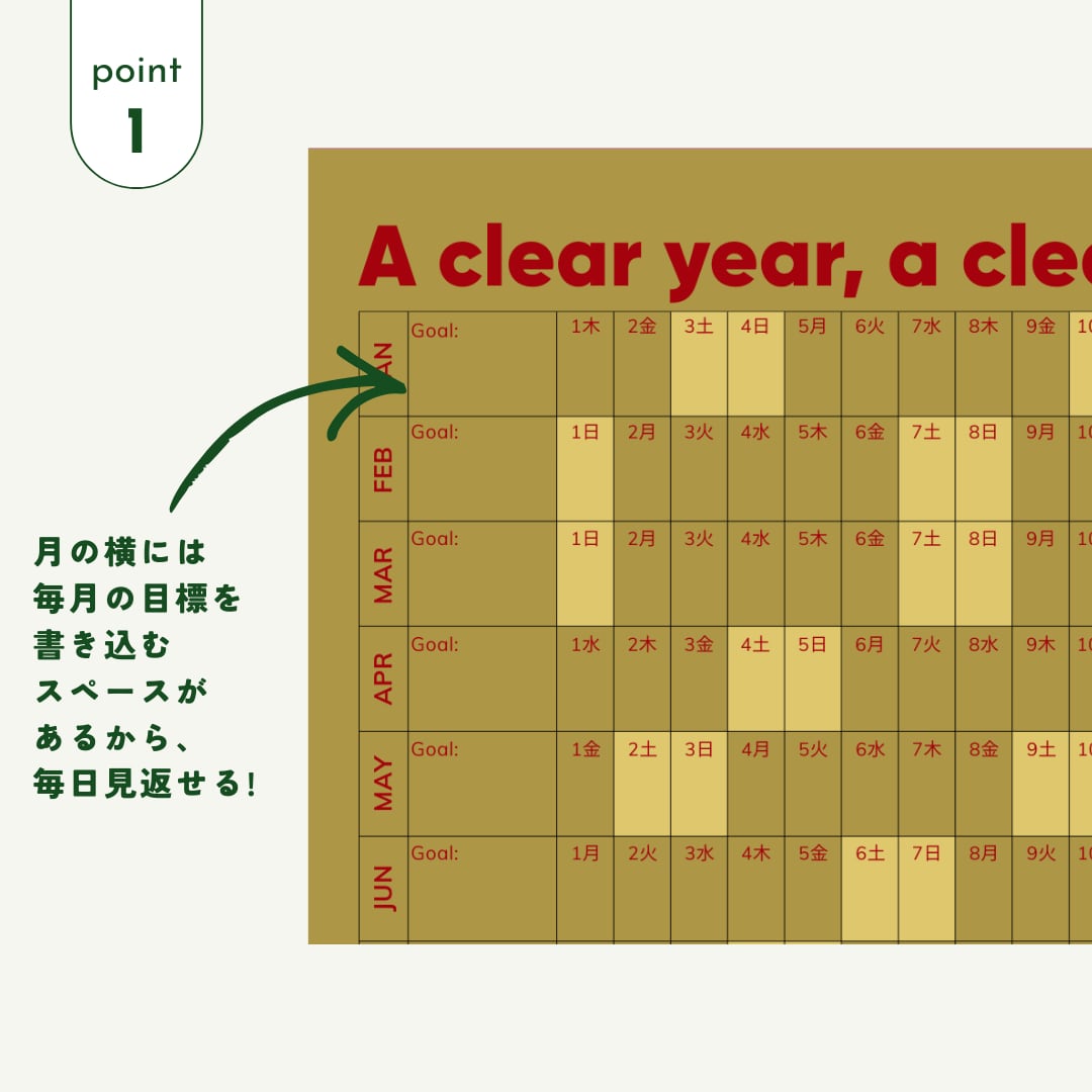 「時間の流れ」を視覚的に感じながら1年を大切に過ごすことができます。