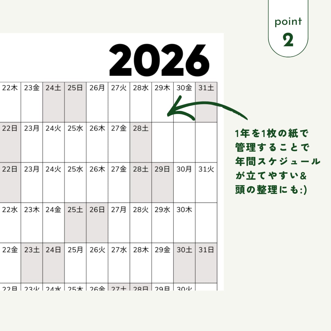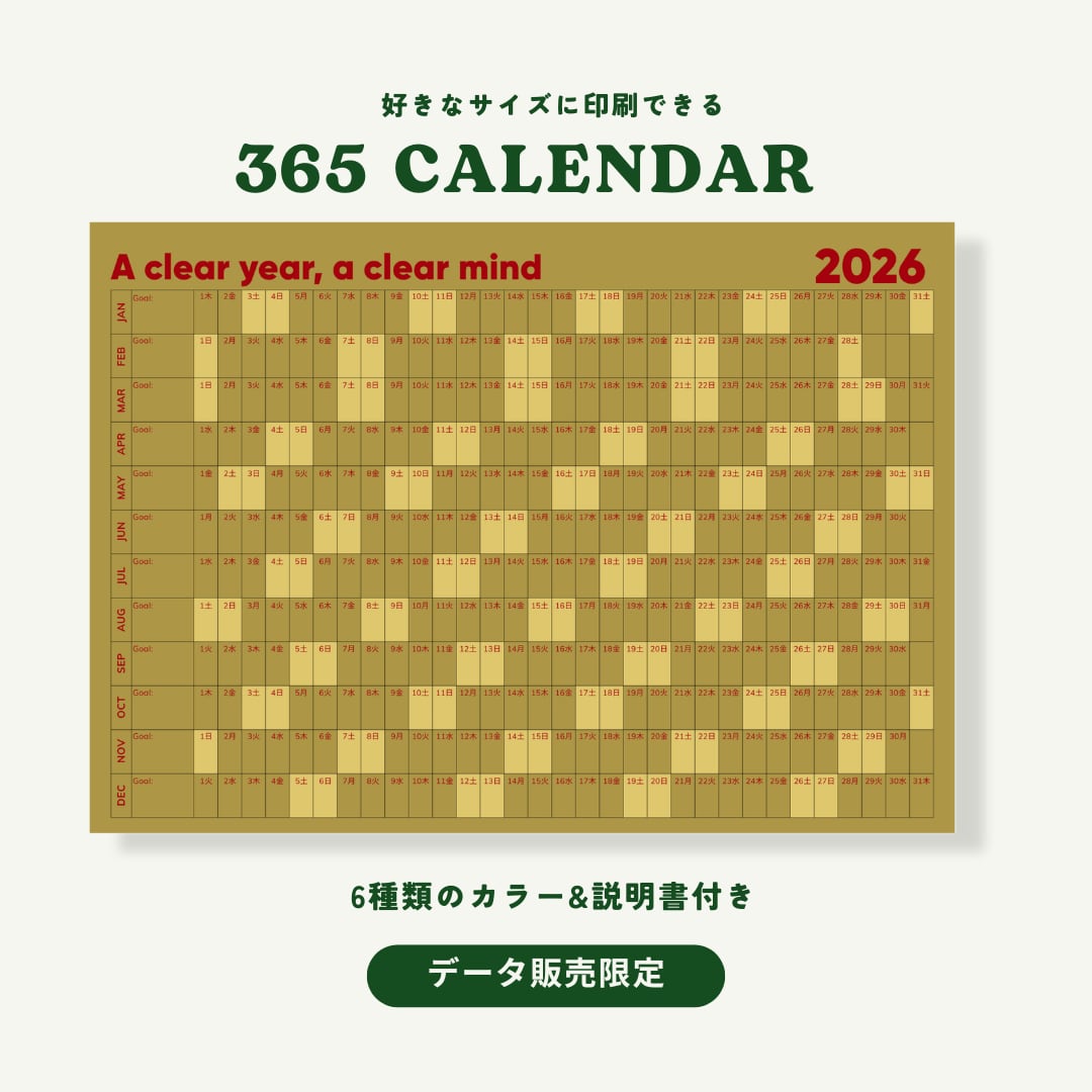 1年を1枚の紙で見渡せる、365日カレンダーです。